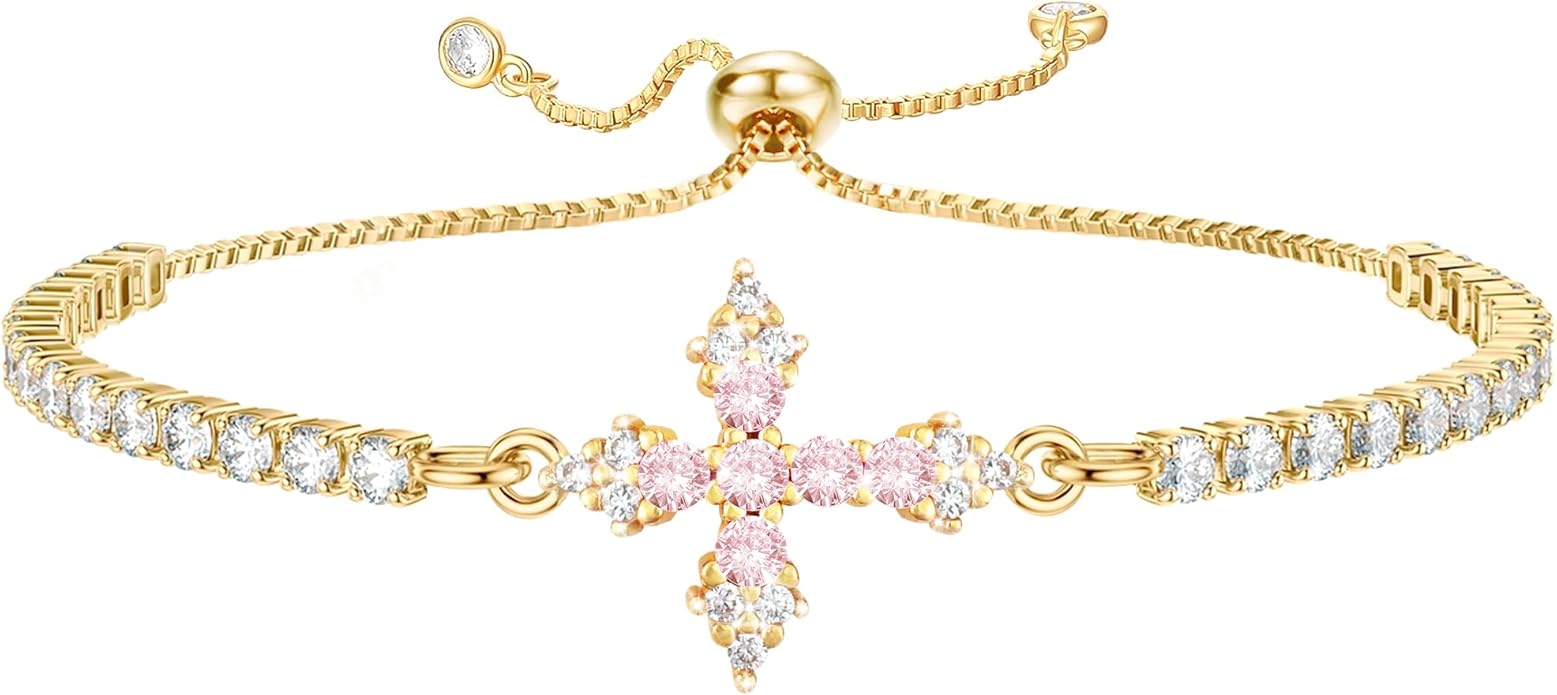 A dainty and meaningful bracelet designed to sparkle with every movement. This 18K gold–plated cross bracelet is elegant, hypoallergenic, and adjustable — making it a beautiful reminder of faith and purity that can be worn every single day.
